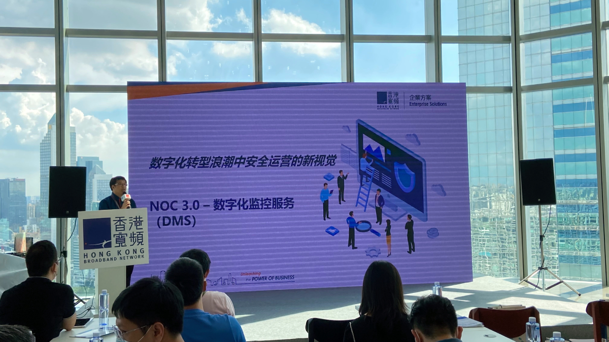 港寬科技的助理客戶服務經理-楊宏超在現場分享NOC3.0 的新視覺,以SaaS交付模式的服務管理方案,提供全生態鏈的管理服務,為企業的安全運營保駕護航!