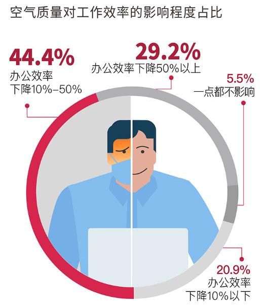 上海交通大學的一項研究發現,在最佳室內溫度為24.8°C時,員工的工作效率可達到104%。相反,怡和中國的研究還表明,超過90%的受訪者表示不良的空氣質量會對他們的工作效率產生負面影響。